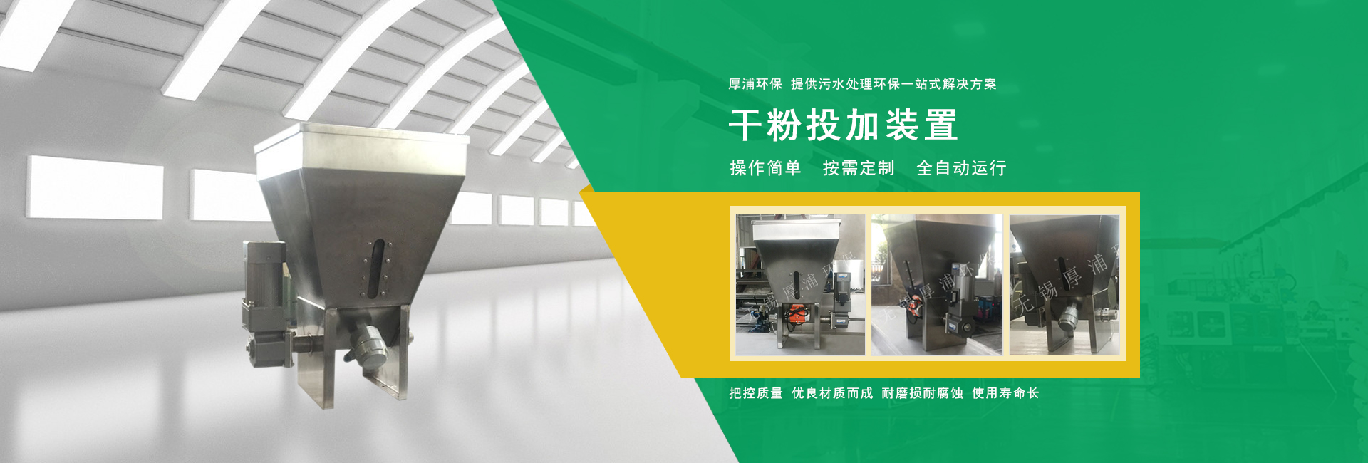 無(wú)錫厚浦環(huán)??萍加邢薰緦?zhuān)業(yè)生產(chǎn)干粉投加/在線(xiàn)稀釋裝置 網(wǎng)站建設(shè):無(wú)錫網(wǎng)科 備案號(hào):蘇ICP備14012459號(hào)-6 蘇公網(wǎng)安備32028202232136號(hào)