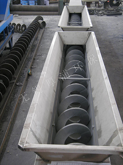 1、螺旋輸送機的結(jié)構(gòu)形式為精密鑄造無軸螺旋,能保證物料輸送流暢,無堵塞。